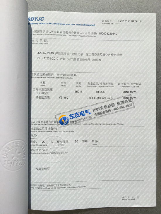 2、高度智能化:校验过程无需恒温室,在任意有效温度范围内均可对SF6气体 密度继电器、压力表进行校验。运用压力与温度动态补偿算法,自动完成压力测量和20℃等效压力值转换,并显示当前温度下的压力、20℃时的等效压力,彻底解决SF6气体密度继电器现场校验难的难题;